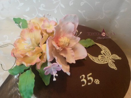Úvod Fotoalbum Čokoládové a ovocné torty (nepoťahované) Čokoládová /narodeninová k 35-tke/ - detail kvetov