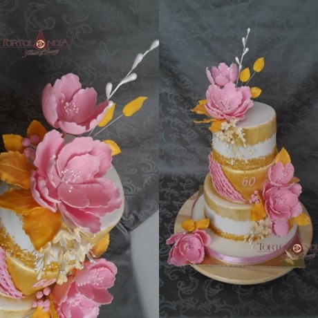 Úvod Fotoalbum Narodeninové a kvetinové torty Ružovo-zlatá k 60tke s fréziami a pivonkami - detail IV.