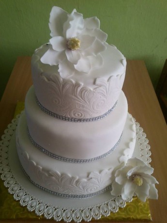 Jednoduchá biela s magnóliou a strieborným štrásom - iný pohľad